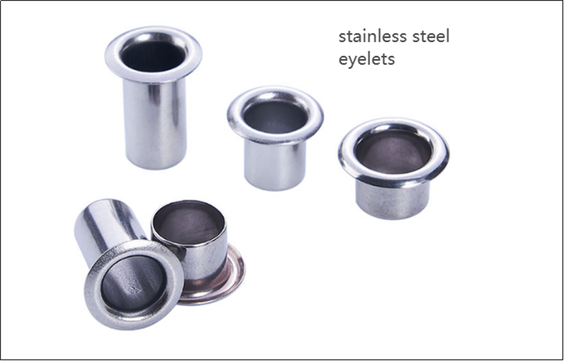 Stainless steel eyelets: Characterized by their strong corrosion resistance, they are often used for fastening food-grade products. However, due to the material's relatively high hardness, production is challenging, resulting in a relatively high unit price.
