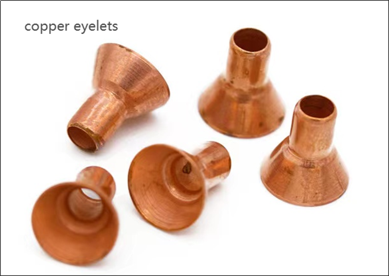 Copper eyelets: Due to their excellent electrical conductivity, they are often used for connecting and securing electronic products.